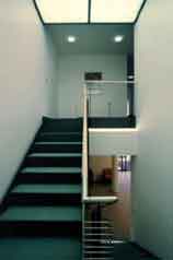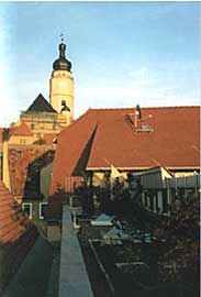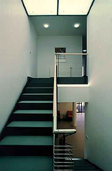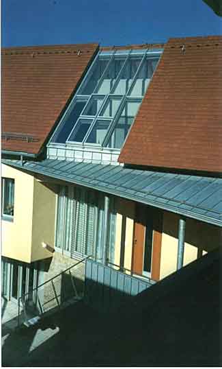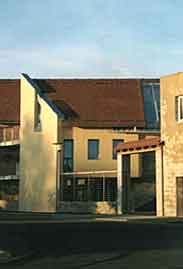 und sozialer Wohnungsbau - unter dieser Thematik wurde auf dem engen und verwinkelten Baugrundstück in der Brücktorstraße am Buttstedter Altstadtrand in hängigem Gelände und mit dichter Umbauung der Versuch unternommen, den gewachsenen Geist des Ortes unter Bezugnahme auf bauliche Elemente des Standortes (Verarbeiten von 3 alten Kellergewölben mit Haus-brunnen) sowie mit nachvollziehbar verfremdetem Zitieren der regionalen Ge-stalttypik zeitgemäß, in schlichter Modernität neu auszusprechen.